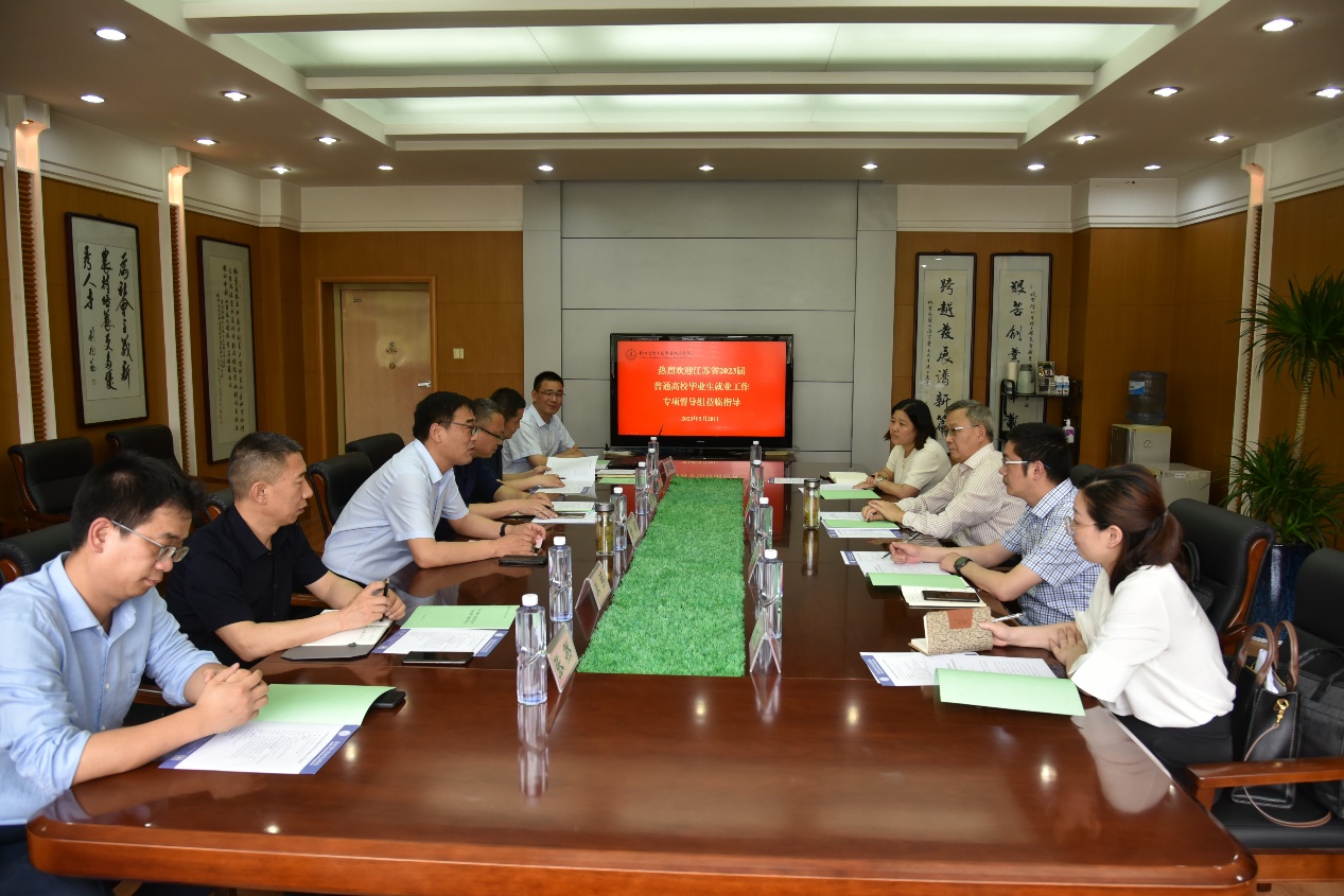 5月20日下午,江苏省2023届普通高校毕业生就业工作专项督导实地督查组一行四人来校督查。省督学、江苏联合职业技术学院原院长宴仲超任督查组组长,河海大学学工处副处长赵海伟、江苏海事职业技术学院学工处副处长孙蕾任组员、江苏省高校招生就业指导服务中心培训服务部业务主管姚倩任联络员。校党委副书记、校长徐锋,校党委委员、副校长强承魁,招生就业处及学工处相关人员参加会议。