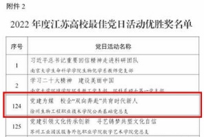 近日,省委教育工委下发《关于公布江苏高校2021-2022年度党建工作创新奖和2022年度最佳党日活动优胜奖评选结果的通知》(苏委教组函〔2023〕24号),我校公共基础党总支开展的《党建为媒 校企“双向奔赴”共育时代新人》主题党日活动荣获江苏省高校 “最佳党日活动”优胜奖。