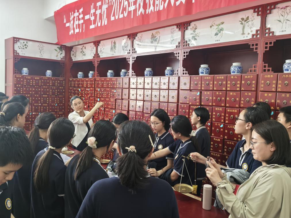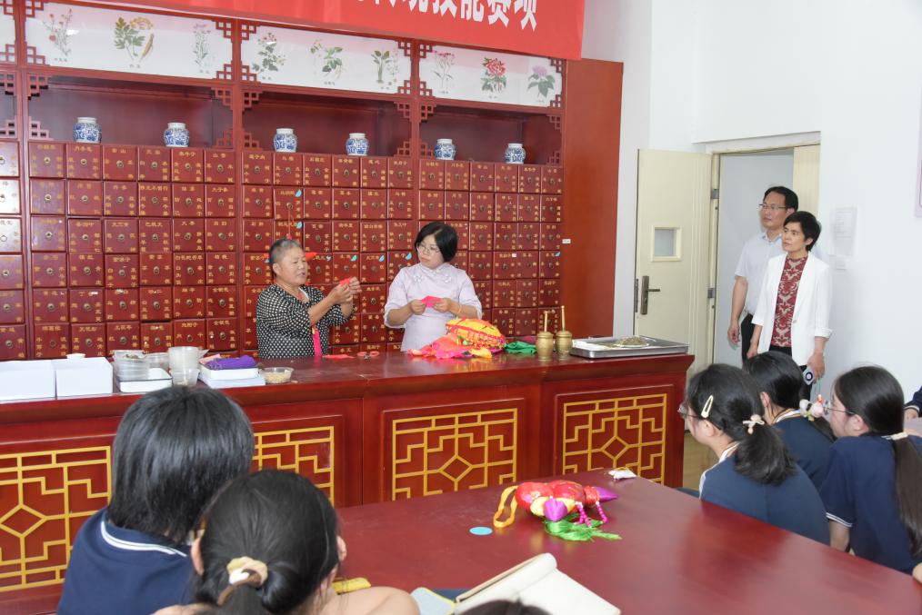 为深入学习贯彻党的二十大、二十届三中全会精神,推动党建与中华优秀传统文化传承工作深度融合,发挥大中小学思政课一体化育人功能,培养更多大国工匠、能工巧匠,药品食品学院在2025年校园职业教育活动周期间,融入地方特色活动,特邀“邳州香包”非遗传承人李佰侠现场传承非遗保护项目,大力弘扬中医药传统文化。