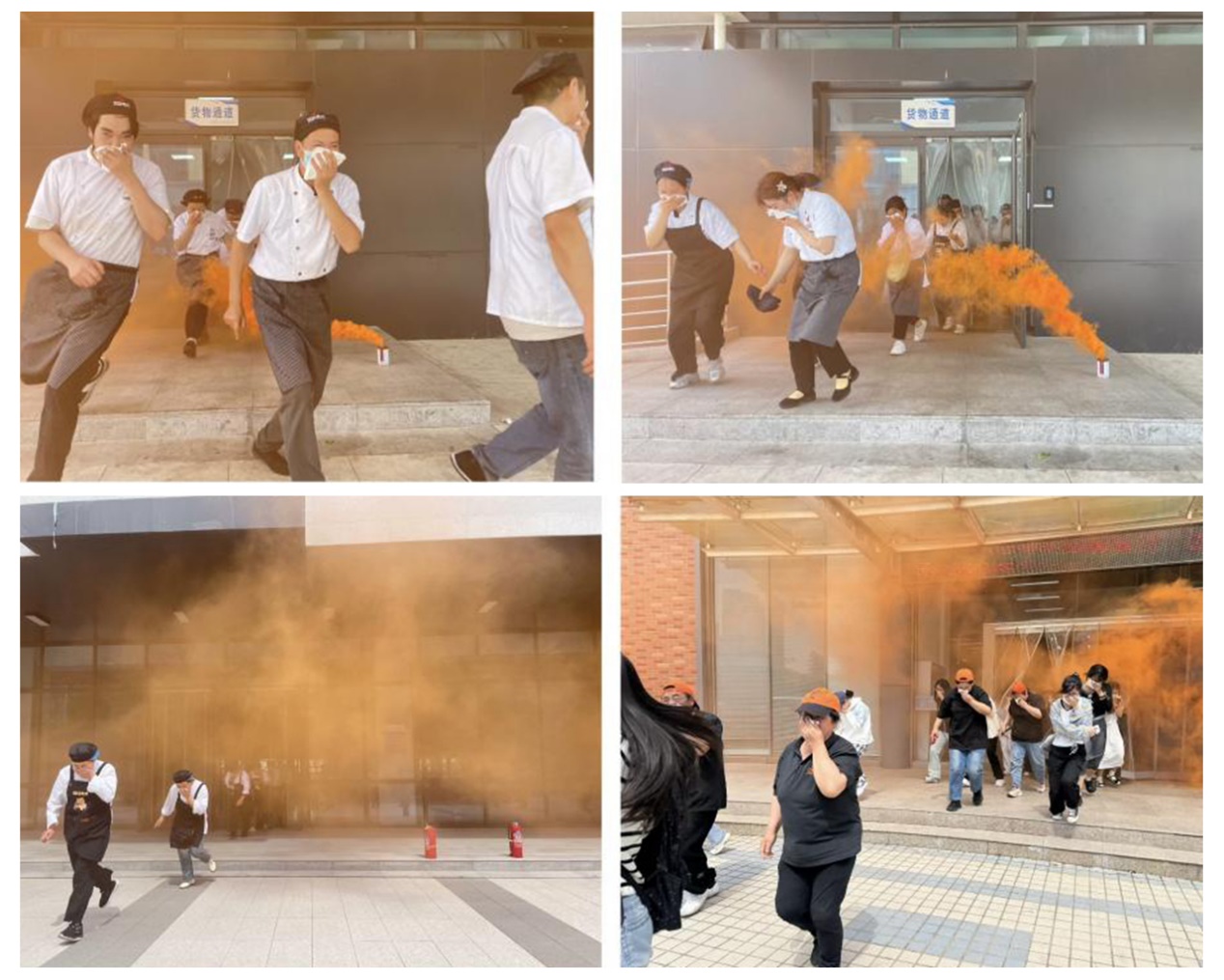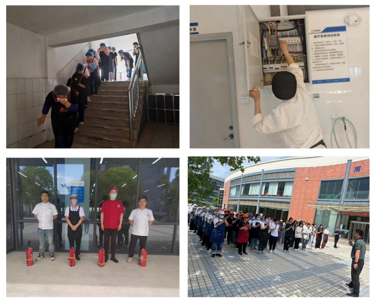 演练前,后勤管理处强化培训、制定方案,成立相关工作小组,明确疏散路线与岗位职责,指导食堂员工熟练掌握灭火器材和消防设施的使用方法,提升员工在火灾紧急情况下的自救互救能力以及应急避险技能。