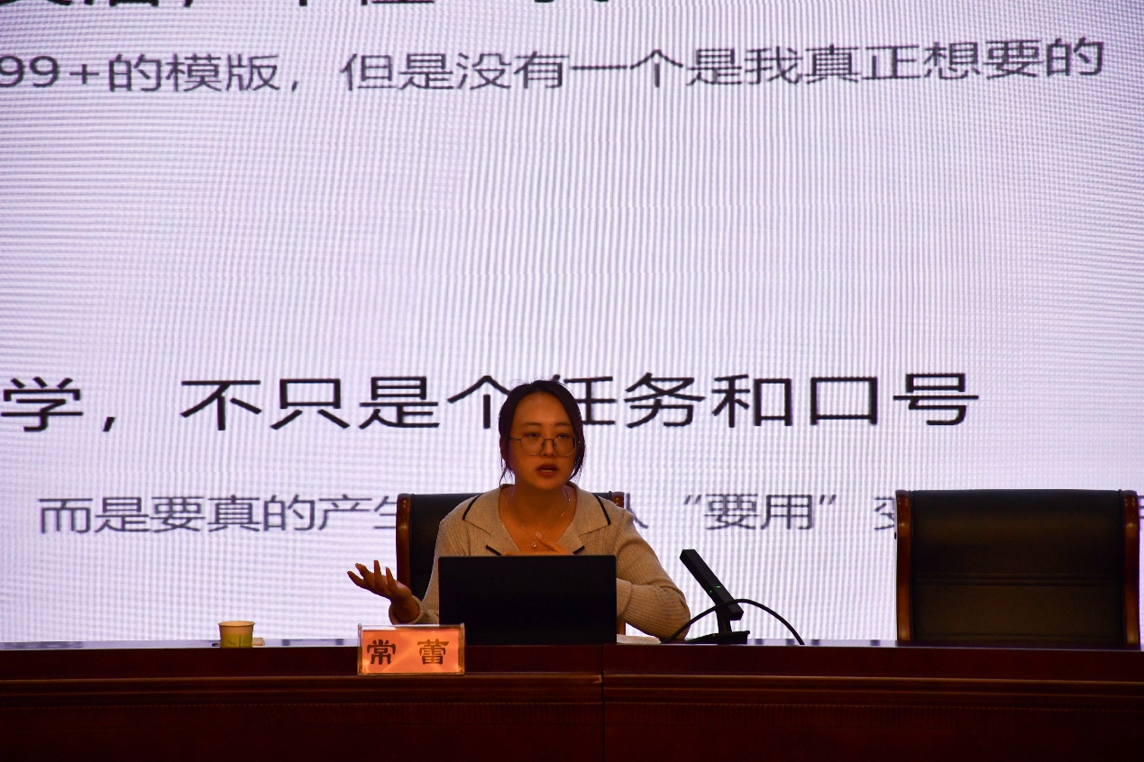 董玉玮以“AI赋能智慧课程建设”为题,从AI赋能教师备课、教学设计、智慧课堂以及学习评价四个方面,深入浅出地阐述了人工智能在课程建设中的高效应用。他指出,在教学中深入实施“AI+”行动的重点在教师、目的在学生,呼吁广大教师积极拥抱智能技术,实现真正的教学赋能。常蕾围绕“人工智能下基于智能体的课程创新应用”主题,详细介绍了智能体课程的核心思想、课程定位以及五大能力,并展示了AI技术的多元应用场景。